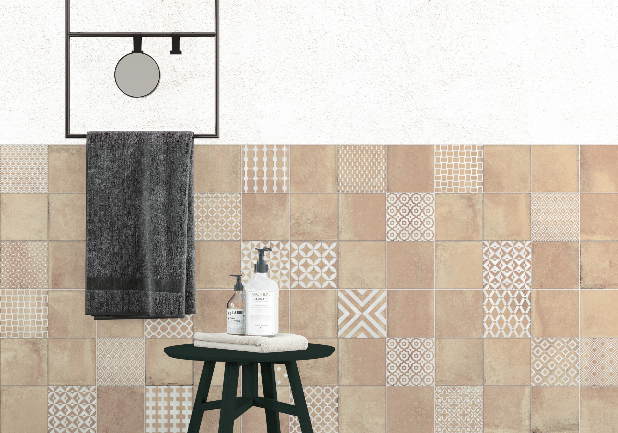 棕白花磚